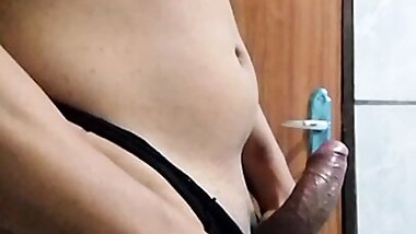 "Sexy cd sucks black dildo"
